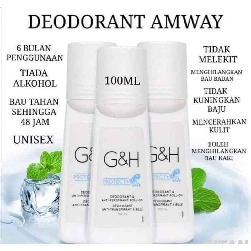 Amway G&H PROTECT+ Deodorant & AntiPerspirant RollOn 100ML ( Amway Deodorant Amway Exclusive technology gives a fresh fragrance burst, especially when active. Does not leave white marks on skin or clothes. Deodorant Amway.